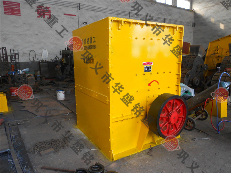 轉(zhuǎn)子盤(pán)在電機(jī)的驅(qū)動(dòng)下,帶動(dòng)錘頭做高速圓周運(yùn)動(dòng),當(dāng)物料進(jìn)入破碎腔后,大塊物料堆放在機(jī)內(nèi)特設(shè)的中部擔(dān)條上,經(jīng)破碎后粒度大于要求的物料隨新物料沿錘頭切線(xiàn)方向打向反擊板再次破碎,從而使粗、中碎一步到位,然后符合要求的物料經(jīng)篦板均整合格后卸出。
